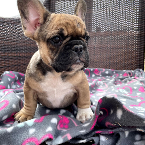 Our fawn female born May 27th, 2019 from Johnny Cash (Breeder: @King_Ranch_Bullz) and Sheila. Carries aya, Dd, EmEm, one copy of piebald.